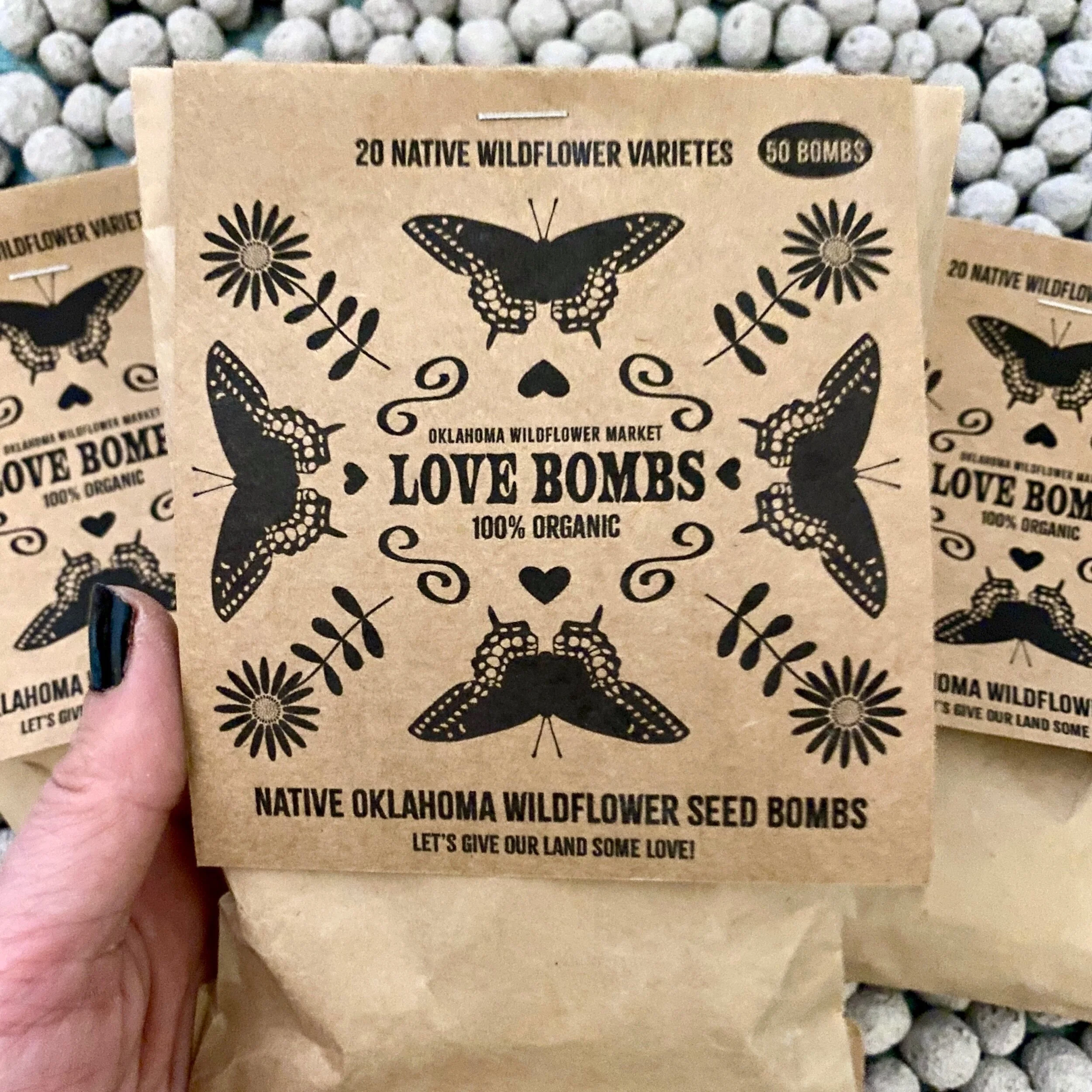 50 native Oklahoma wildflower varieties are now included in our Love Bombs for extended bloom time from early spring through late fall to provide maximum nectar and pollen support for our native pollinators and wildlife!